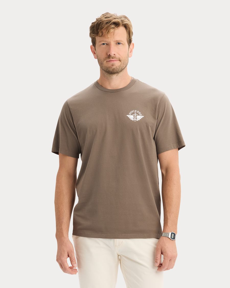 View of model wearing Pembroke Graphic Tee, Regular Fit.